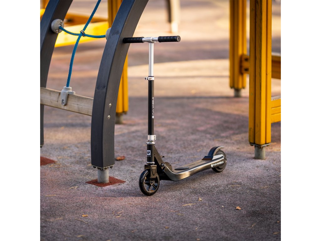 Otroški električni skiro Fun Wheels ima v platformi vgrajen nožni pogon, vendar se vozilo, za razliko od tradicionalnih modelov električnih skirojev, zažene šele po odrivu. To bistveno poveča varnost in udobje med vožnjo.