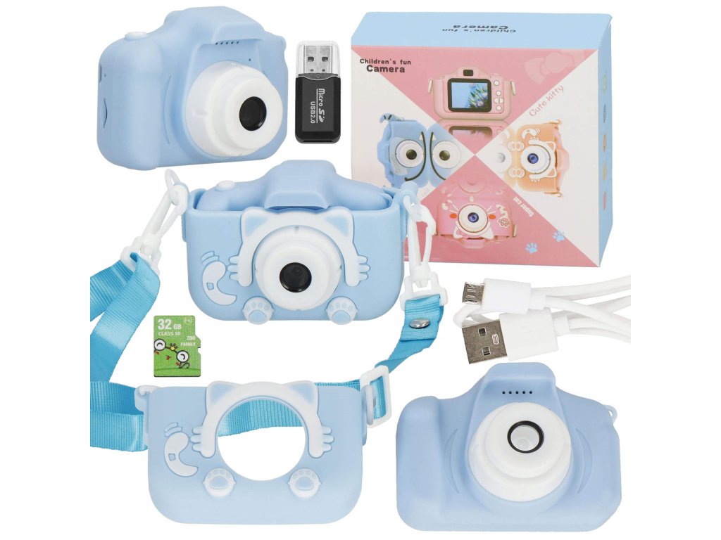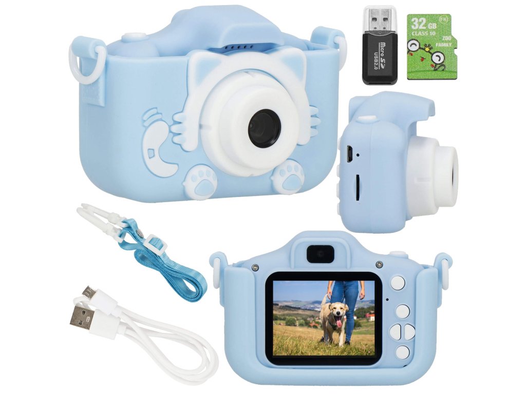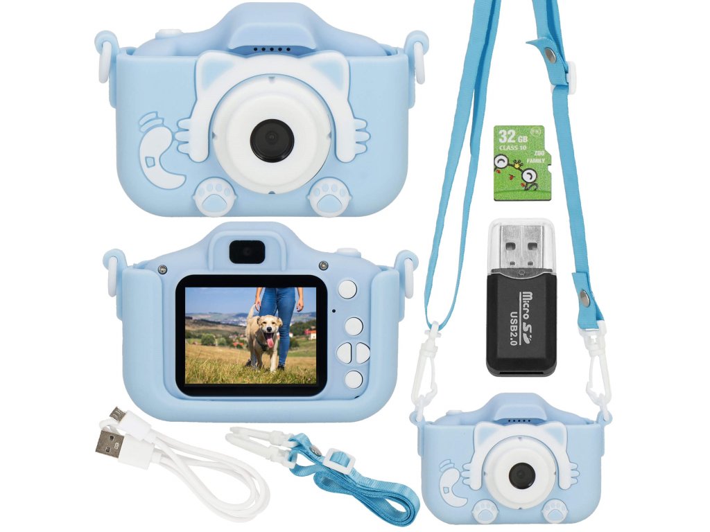 Set vsebuje: fotoaparat / silikonsko ohišje / USB kabel / pašček z nastavljivo dolžino / mini SD pomnilniško kartico z bralnikom