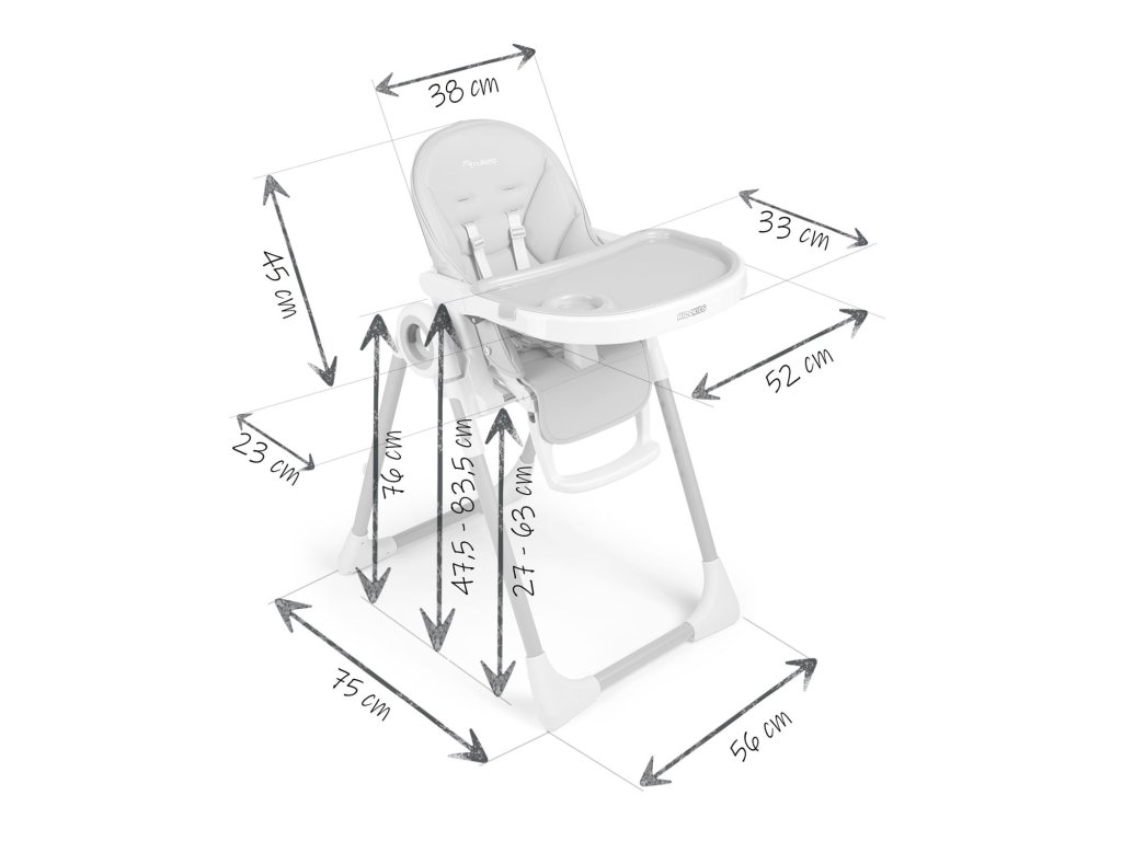 - lahko prilagodite položaj pladnja ali ga odstranite, ko želite otroka vzeti iz visokega stola ali ga privezati k mizi pri družinski večerji.