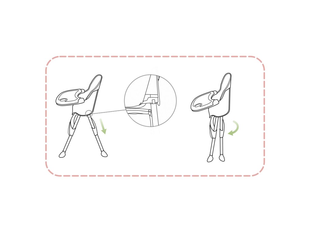Stolček vam omogoča prosto nastavitev razdalje med pladnjem in otrokom. Prav tako ga lahko kadarkoli popolnoma odstranite.