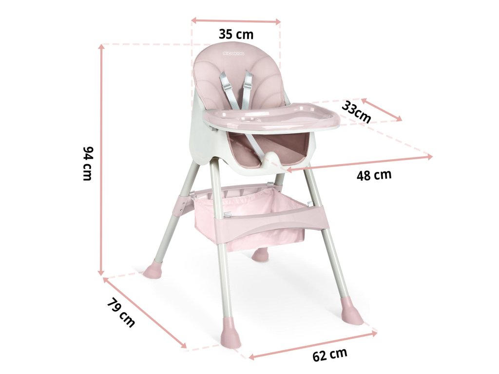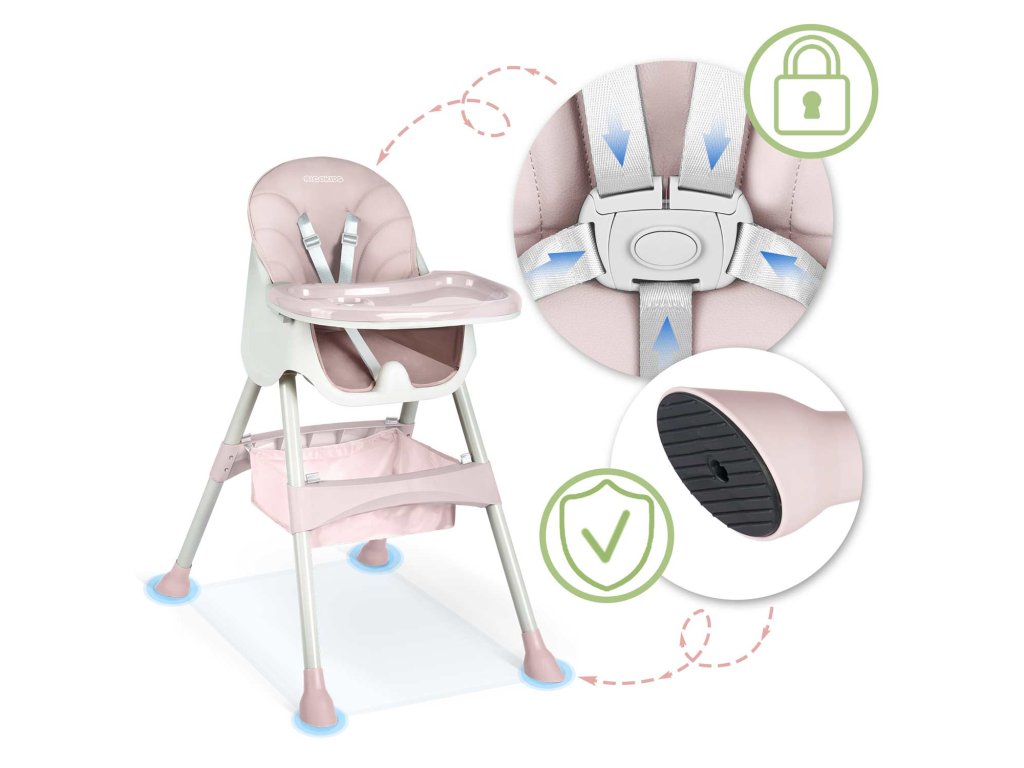Otroški jedilni stol 3v1 Milo roza