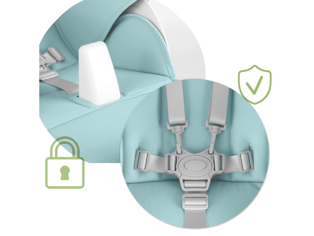 - Funkcija poganjalec - zahvaljujoč nastavljivemu naslonjalu za hrbet in noge lahko stolček Belo uporabljate kot poganjalec že od prvih mesecev življenja vašega otroka!