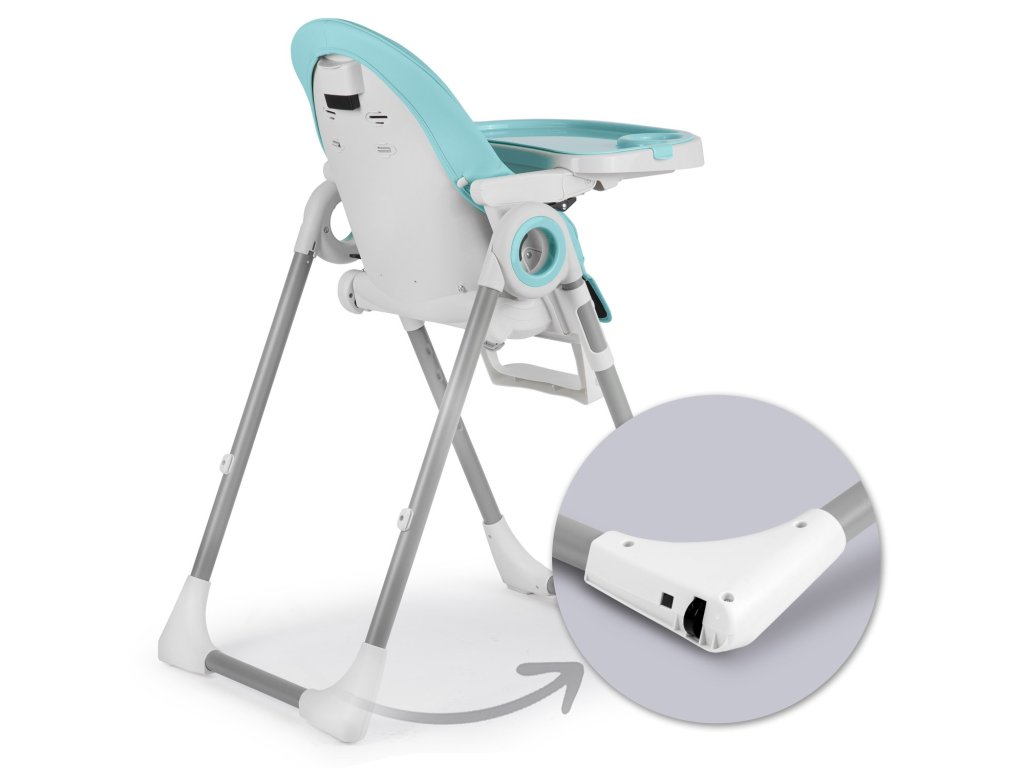 Zahvaljujoč kolesom, nameščenim na zadnjih nogah stolčka, lahko stolček preprosto premaknete na drugo mesto.