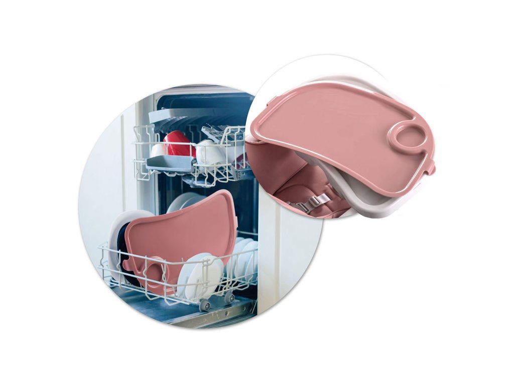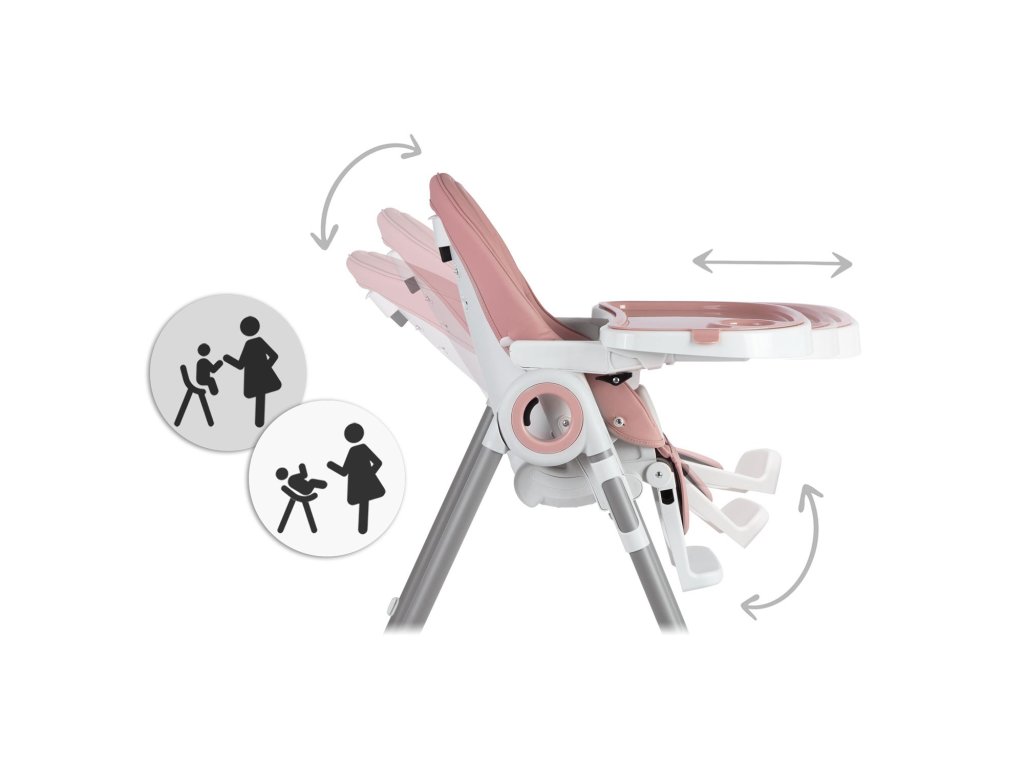 - Lahko nastavite položaj pladnja ali ga odstranite, ko želite otroka vzeti iz visokega stola ali ga približati k mizi za družinsko večerjo