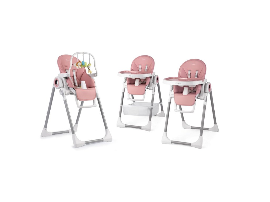 Otroški jedilni stol Belo roza