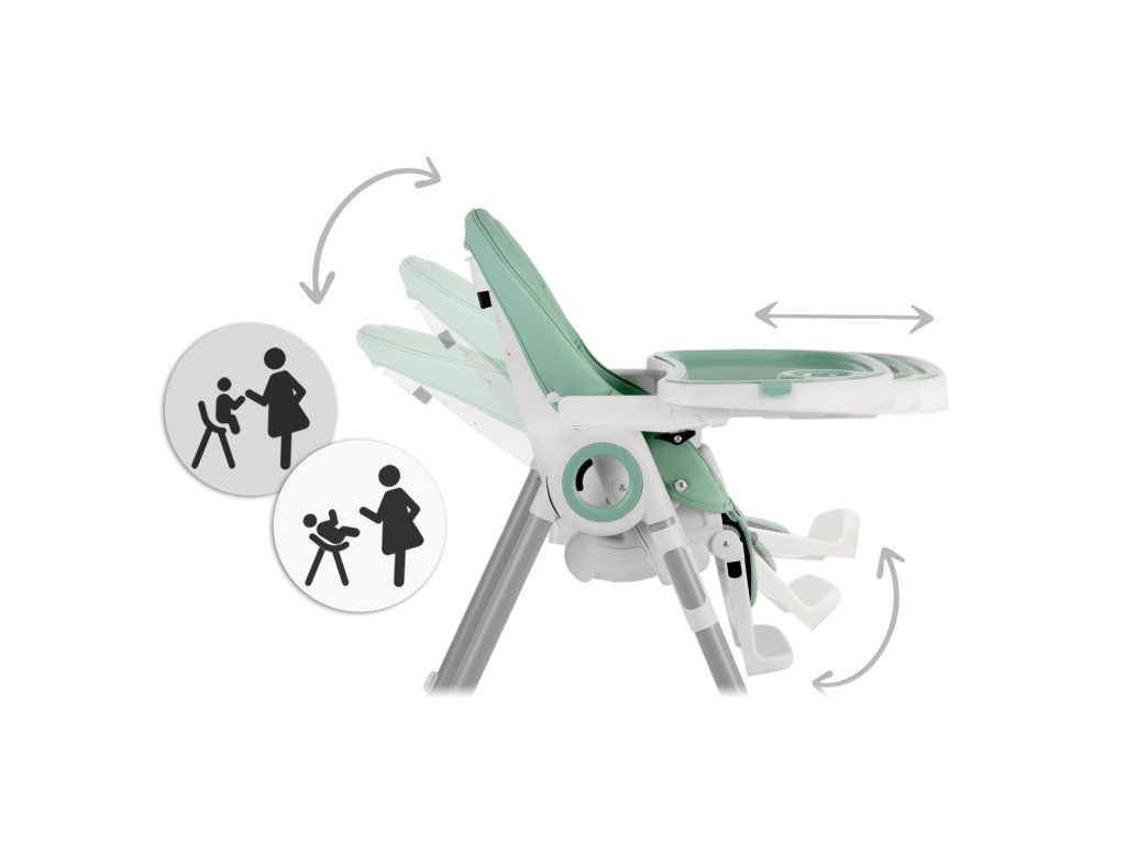 - lahko prilagodite položaj pladnja ali ga odstranite, ko želite otroka vzeti iz stola ali ga pripeljati k mizi na družinsko večerjo.