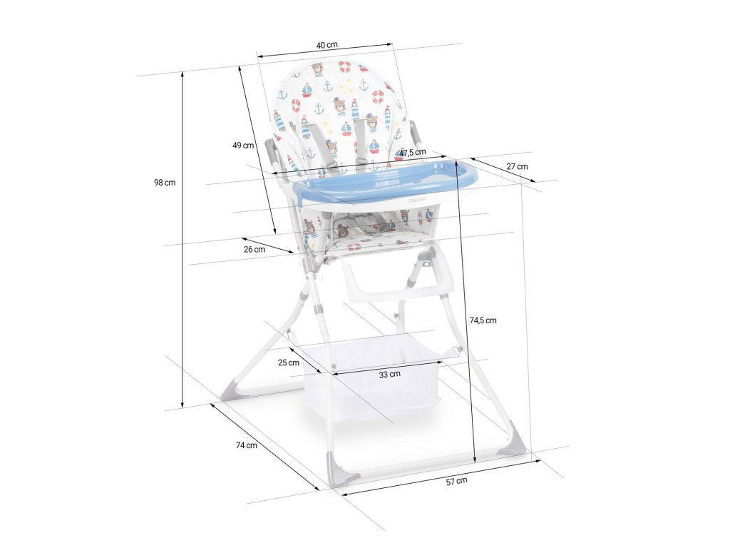 Otroški jedilni stol Eldo belo-moder