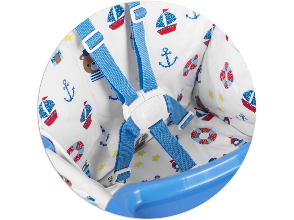 Varnostni pasovi s praktično zaponko zagotavljajo popolno varnost in zaščito otroka pred samovoljnim spustom s stola.
