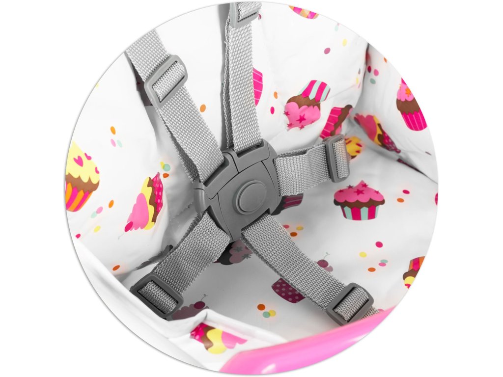 Varnostni pasovi s praktično zaponko zagotavljajo popolno varnost in zaščito otroka pred nenamernim premikom stolčka.