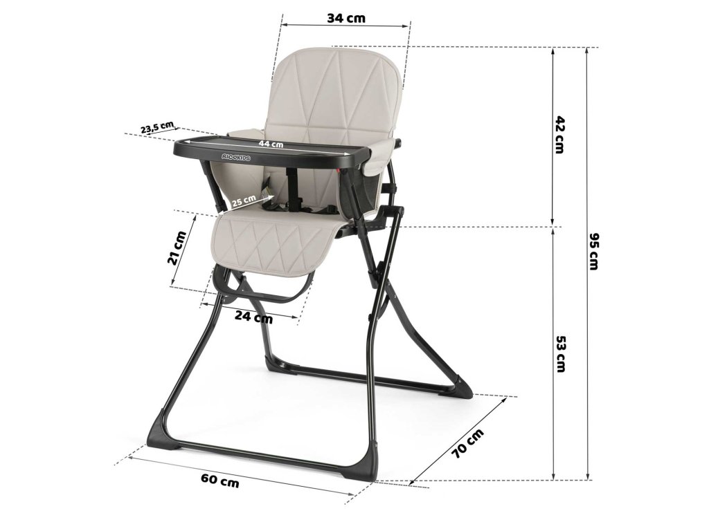 Otroški jedilni stolko je zloženzavzame malo prostora, da se prilega v garderobo ali izbrani kotiček.
