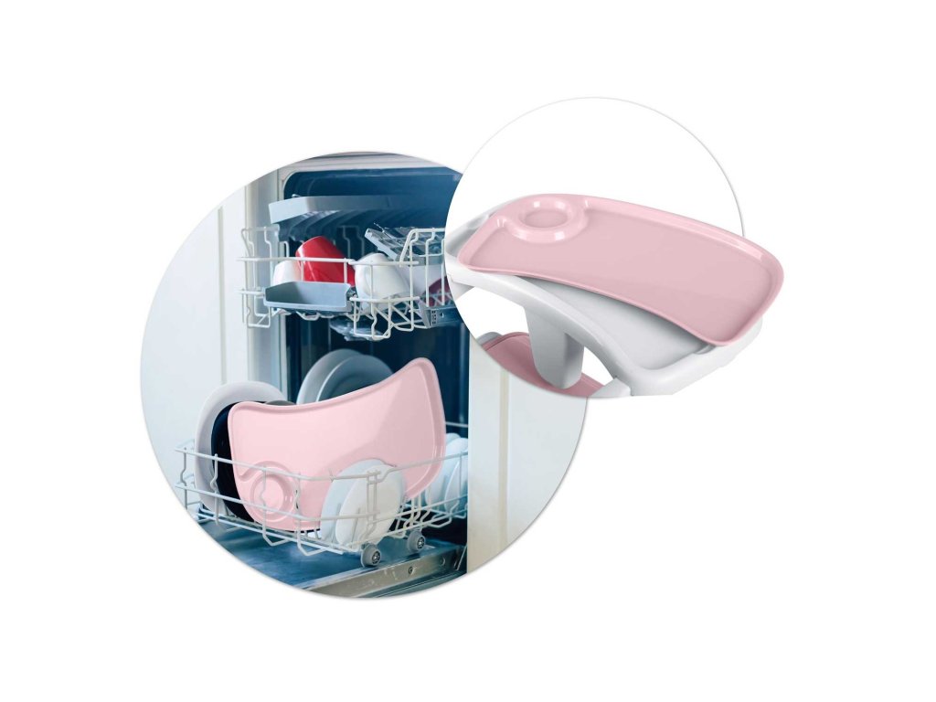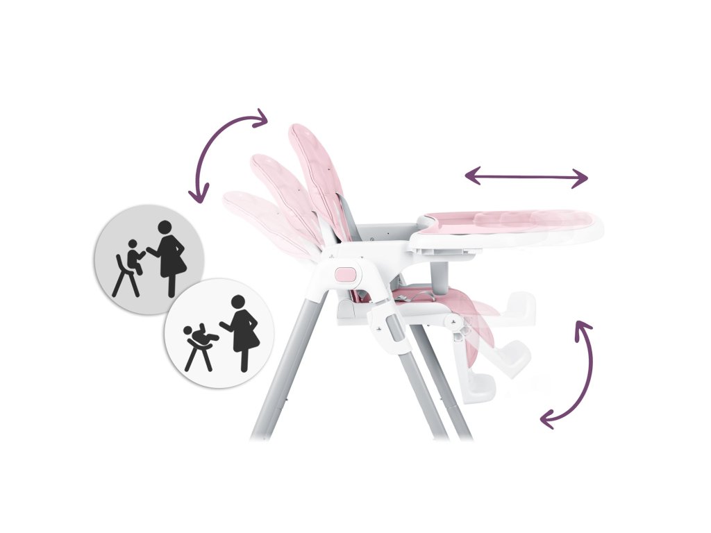 Stol omogoča poljubno nastavitev razdalje pladnja od otroka. Pladenj se lahko tudi kadarkoli popolnoma odstrani.