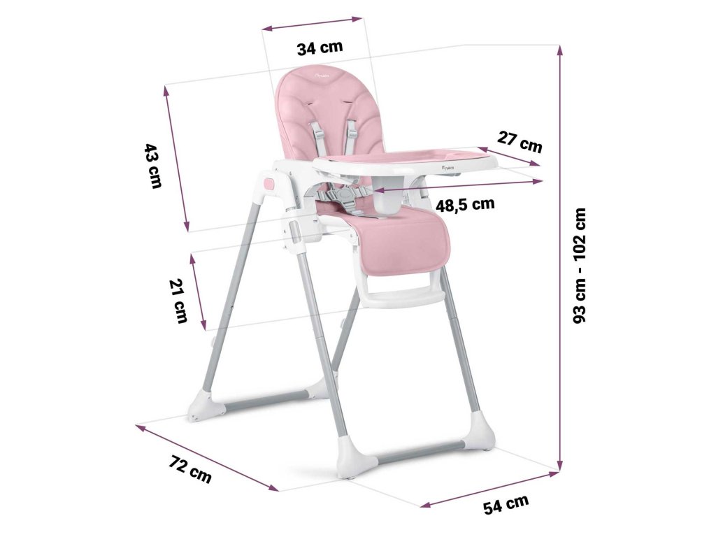 Trdna konstrukcija in nameščena kolesa olajšajo uporabo stola, zlasti pri mlajšem otroku!