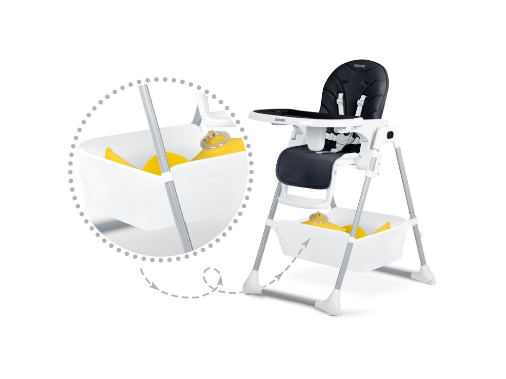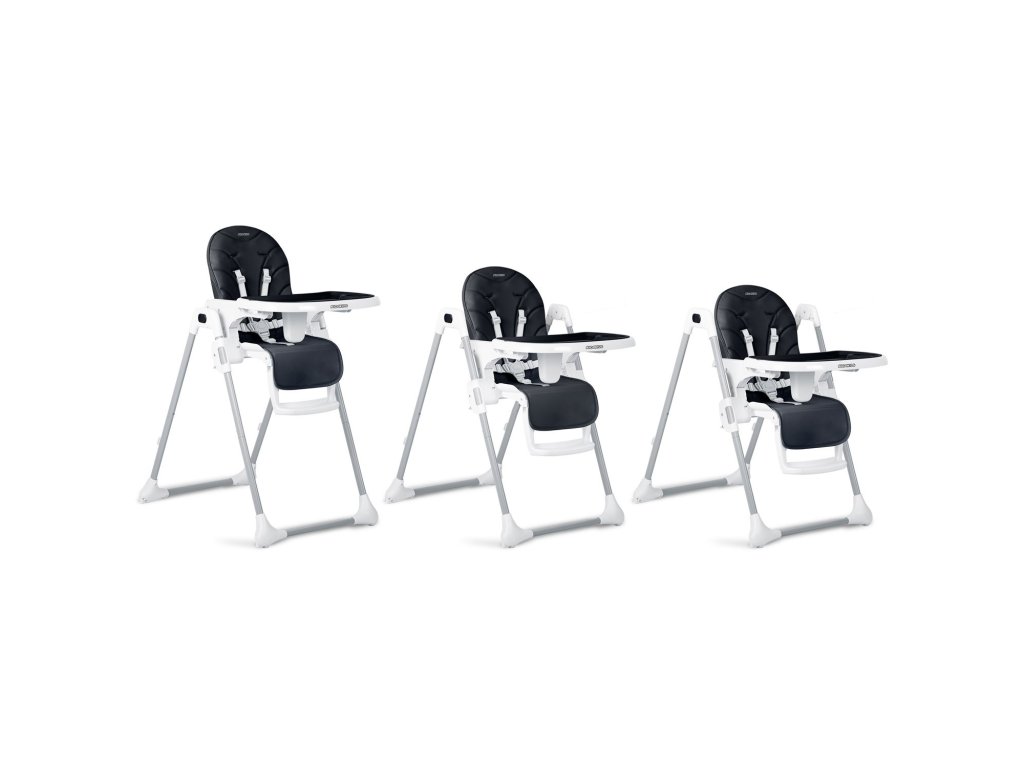 Visoki stol omogoča poljubno nastavitev razdalje pladnja od otroka. Prav tako se lahko kadarkoli popolnoma odstrani.