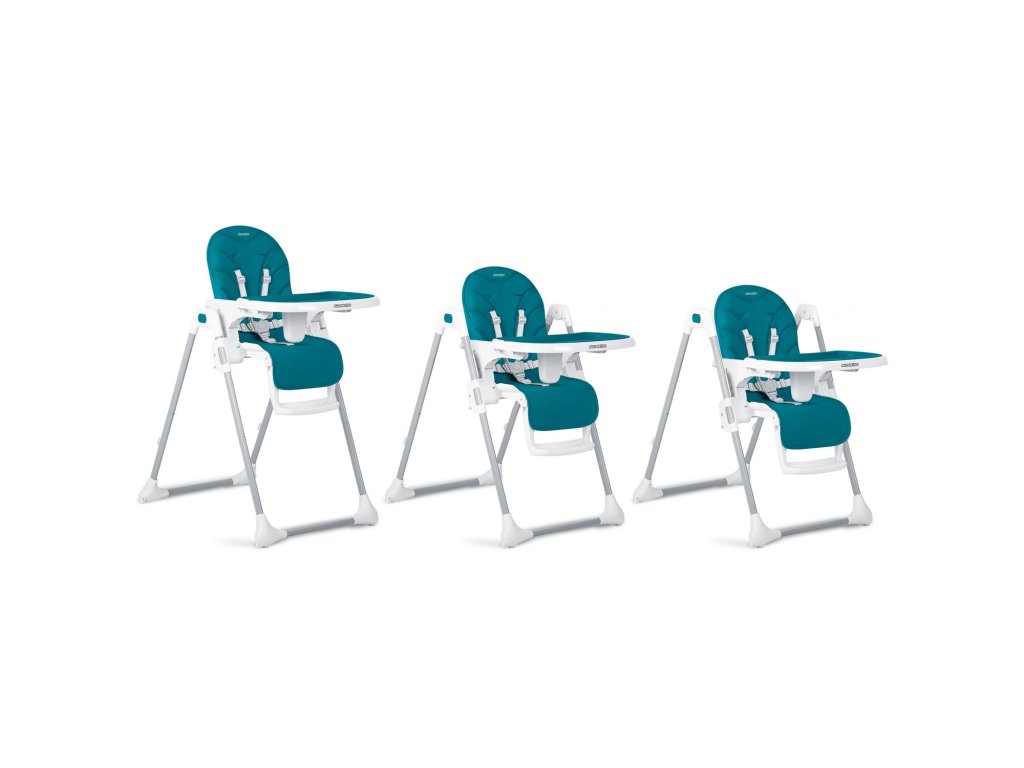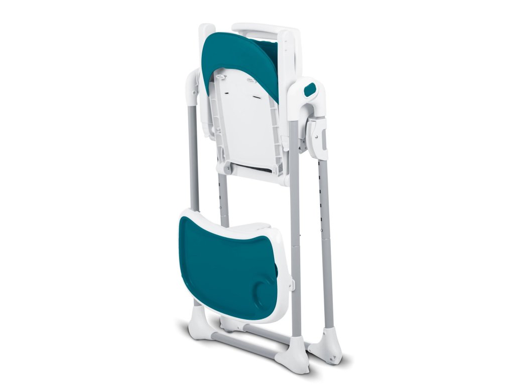 Visok stol omogoča poljubno nastavitev razdalje pladnja od otroka. Lahko se tudi kadarkoli v celoti razstavi.