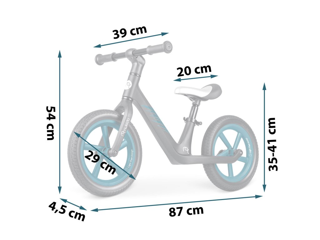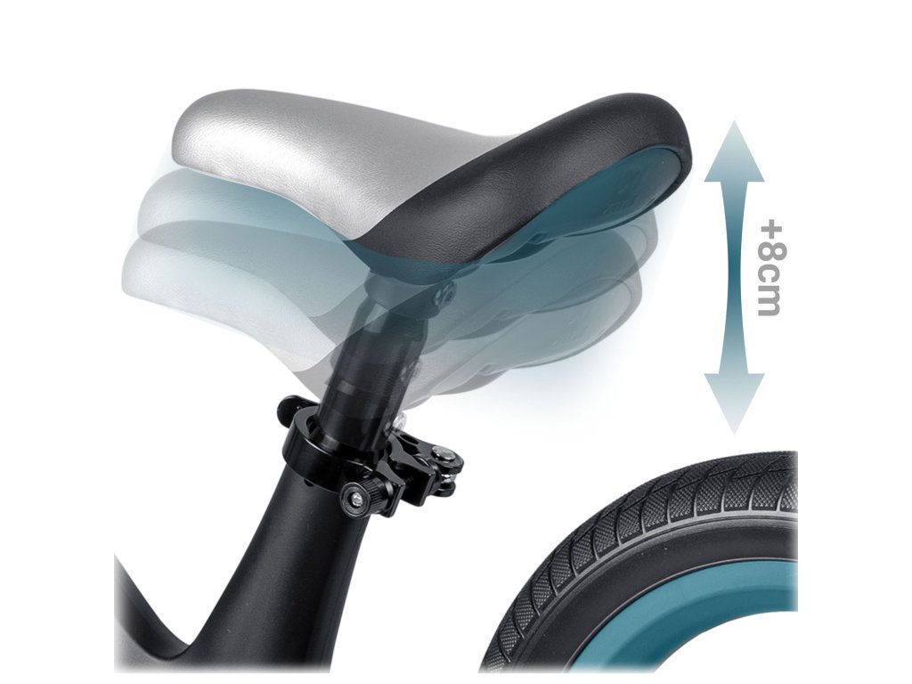 - Daljša doba uporabe: možnost nastavitve višine sedeža do 8 cm omogoča prilagajanje ravnotežnega kolesa spremembam višine otrok, zaradi česar se ravnotežno kolo lahko uporablja dlje časa.