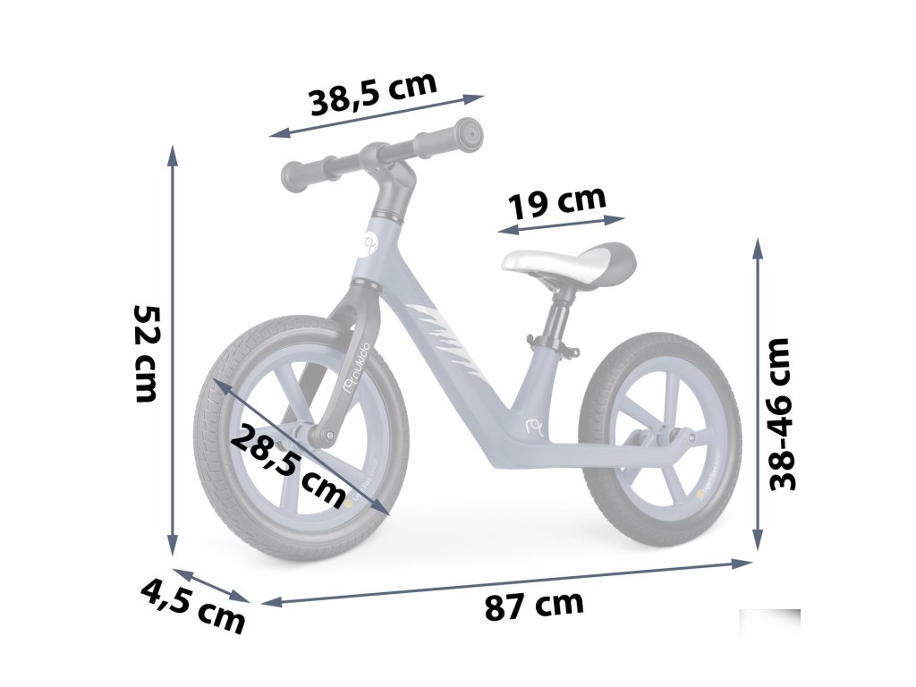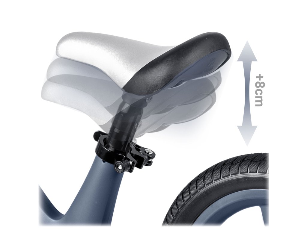 - Daljša uporaba: možnost nastavitve višine sedeža za do 8 cm omogoča prilagoditev poganjalcu spreminjajoči se rasti otroka, kar omogoča, da je uporaben daljše obdobje.