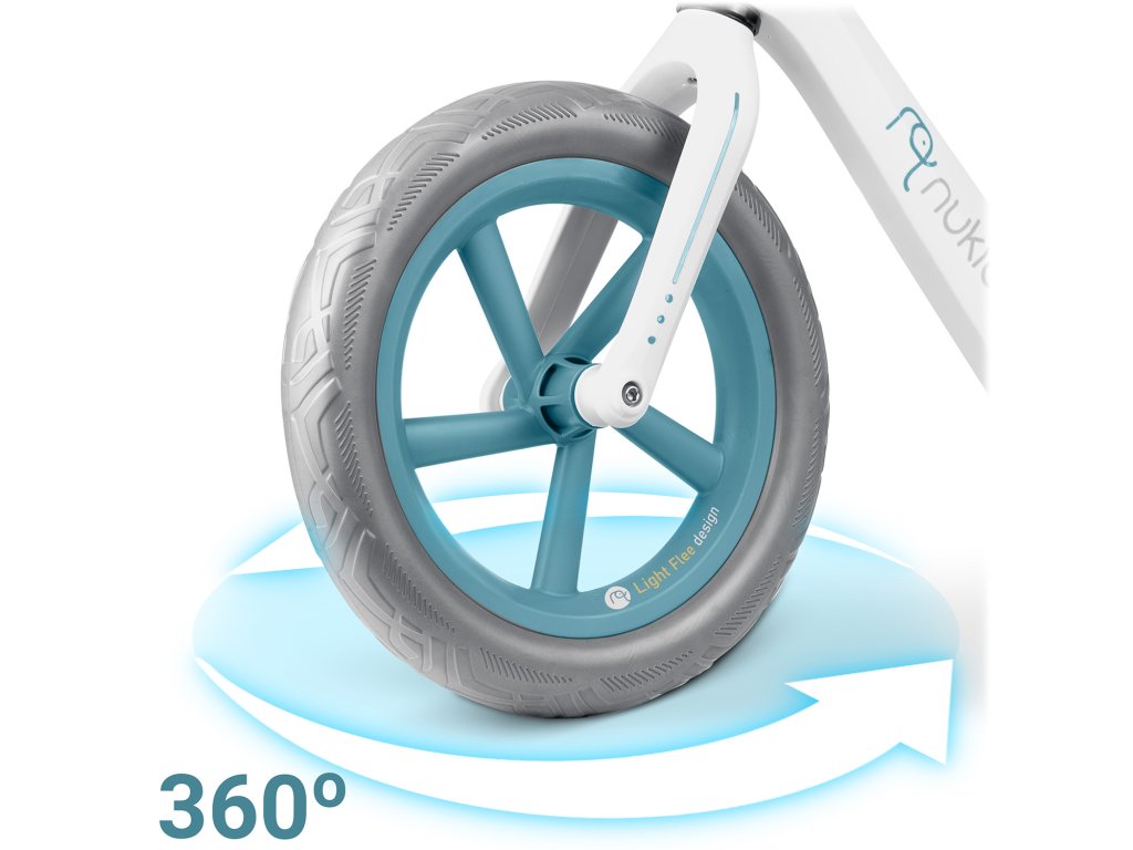 - Lažje zavijanje: vrtljiva kolesa 360 stopinj omogočajo otroku hitro in natančno zavijanje v katerokoli smer, brez dviganja sprednjega kolesa ali izvajanja večjih gibov telesa.