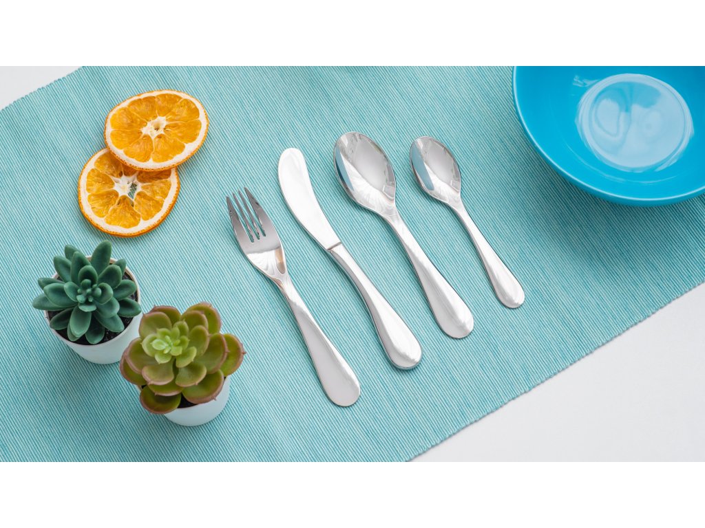 Želite, da se vaš otrok počuti posebno? Dovolite mu, da samostojno je z lastnim kompletom jedilnega pribora. Jedilni pribor za otroke Teesa je popoln komplet za začetek učenja samostojnega prehranjevanja. Vključuje popolnoma poliran nož, vilice in žlico za kosilo ter čajno žličko.