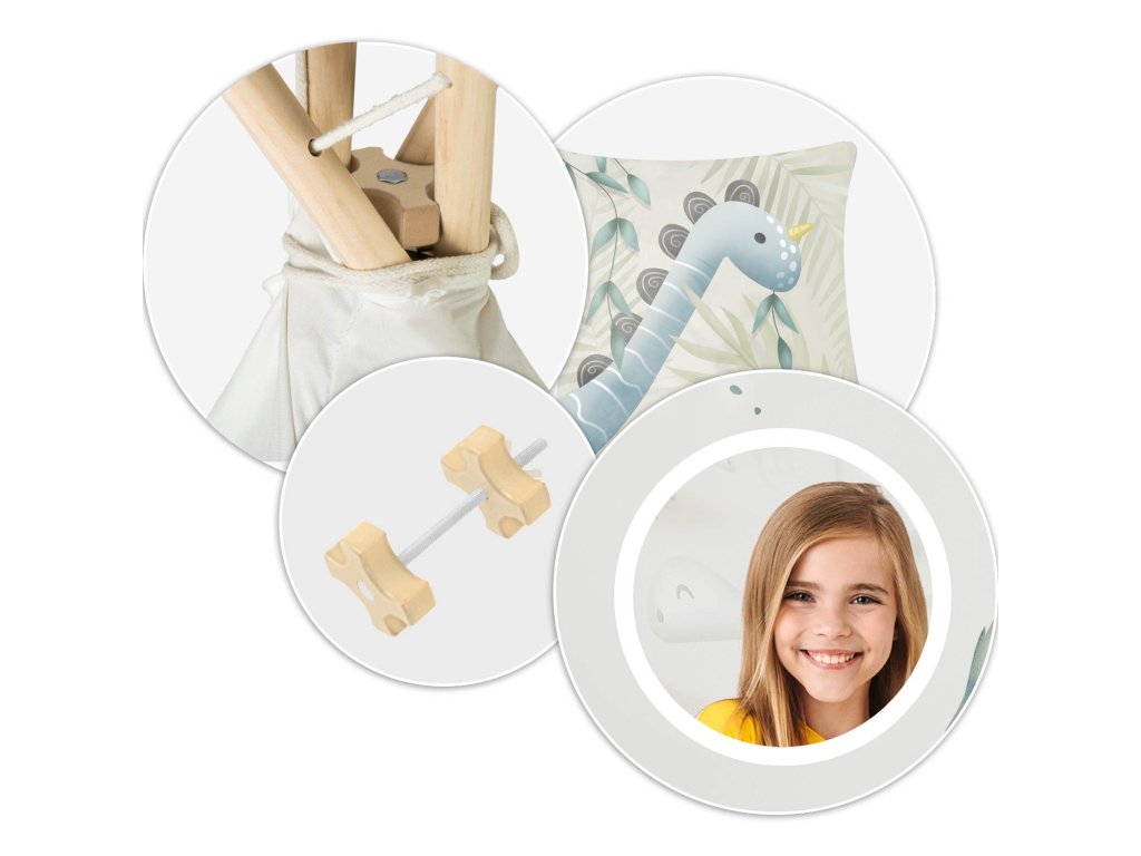 spodbujajo otrokov razvoj in s posebej oblikovano grafiko bo tipija otroku prinesla veliko veselja.Varni materialiPri otroških izdelkih je vredno izbrati trpežne materiale najvišje kakovosti. Zato je naš tipi narejen iz