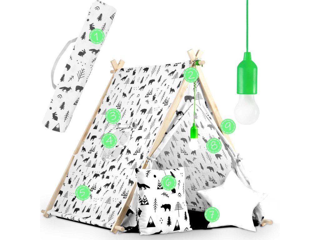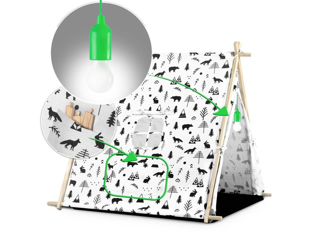 Otroški šotor z lučko - bel