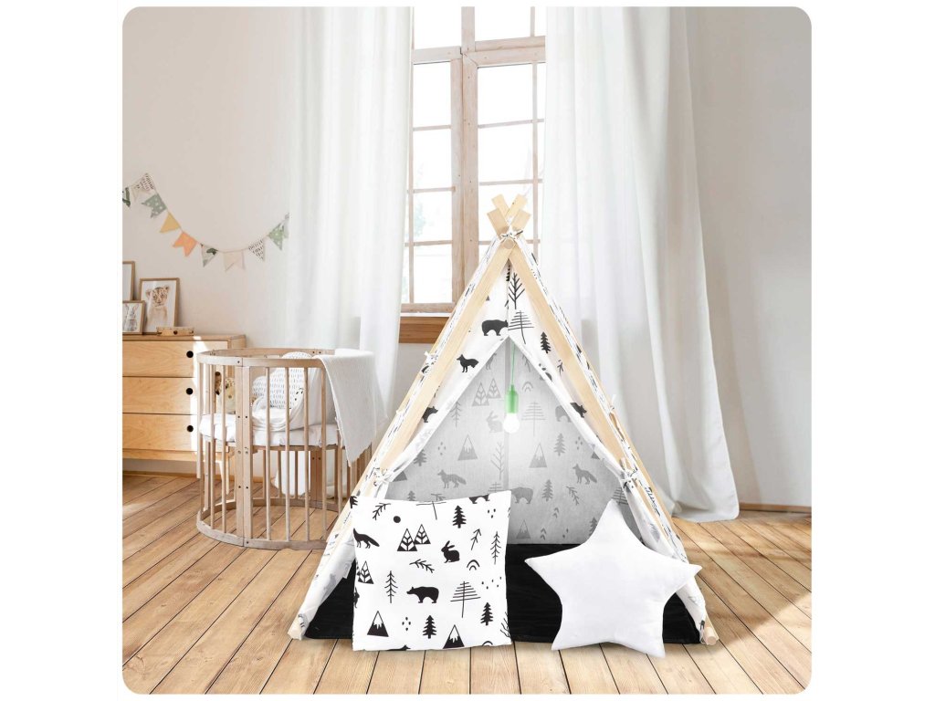 Otroški šotor v obliki indijanskega tipija je HIT oblikovanja otroške sobe.