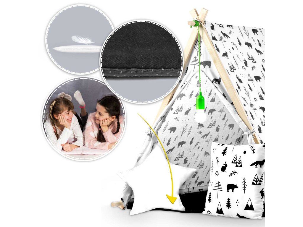 TIPI je dobavljen s kompletom 2 vzglavnikov, prikazanih na fotografiji!