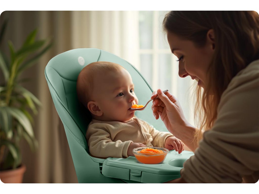 Podpora pravilni drži telesa: skrbno načrtovan stolček pomaga pri ohranjanju pravilne drže telesa pri jedi in igri.