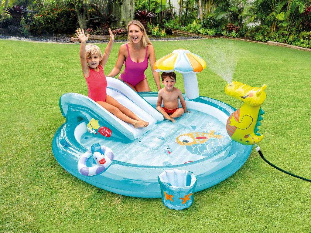 Napihljivo igrišče je primerno za otroke od 2 let#, vendar bo #navdušilo tudi starejše otroke. Intex je poskrbel, da lahko vsi otroci varno izkoristijo energijo in uživajo v vodni zabavi.
