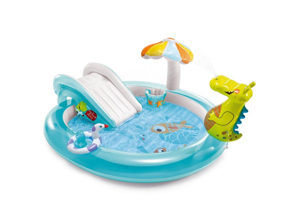 Razveselite otroke s tem fantastičnim vodenim igriščem. Napihljivo igrišče s krokodilom bo služilo ne le kot vrtni vodni park, ampak tudi v hladnejših dneh kot suh bazen.