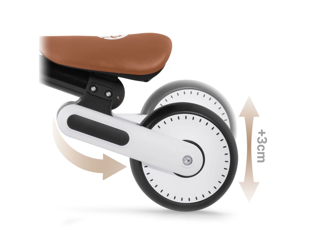 - Boljše prilagajanje: omogoča popolno prilagoditev višine sedeža trenutni višini otroka, kar izboljšuje udobje in olajšuje učenje ravnotežja.