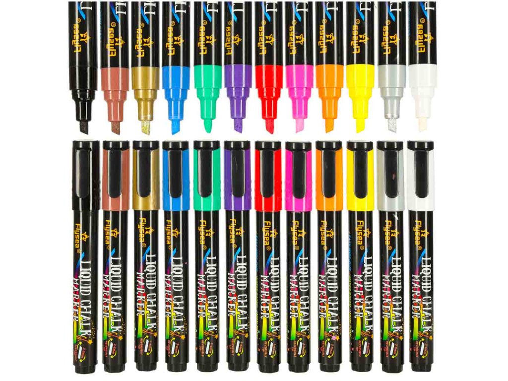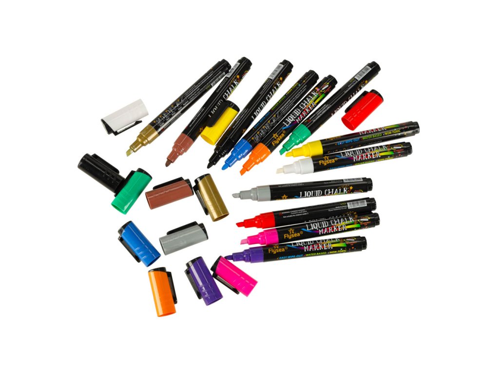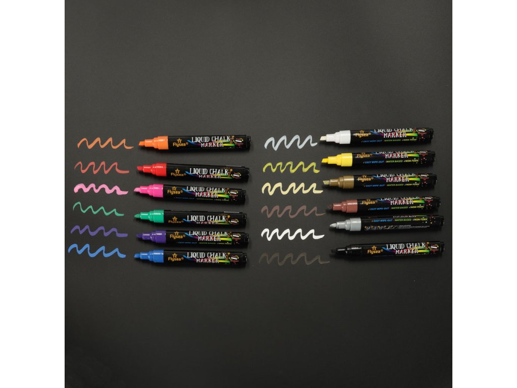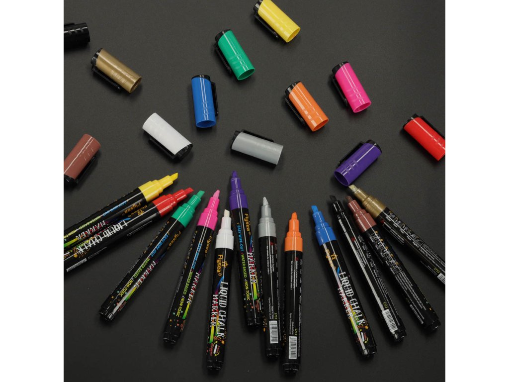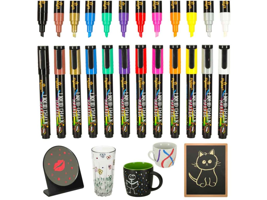 Ta komplet vsebuje 12 barv, ki so idealne za ustvarjanje izrazitih napisov, ilustracij in dekoracij. Idealni so za dekoriranje izložb, ogledal, brisalnih tabel, keramičnih skodelic in drugih gladkih površin.