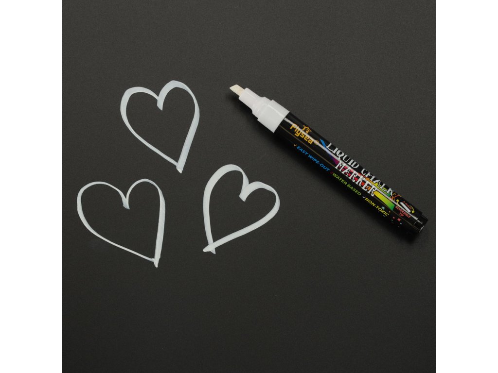 Kreda in črnil na vodni osnovi se zlahka odstranita z vlažno krpo in ne puščata sledi ali nečistoč. To omogoča ponovno spreminjanje risb in napisov, zaradi česar so flomastri idealni za table z meniji.