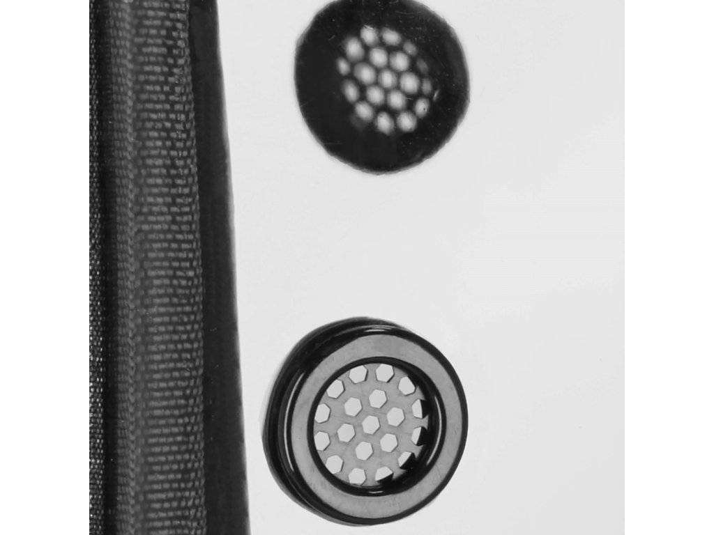 - Na sprednji pokrivki prezračevalna mrežica, na straneh tri prezračevalne odprtine s perforacijo na vsaki strani.