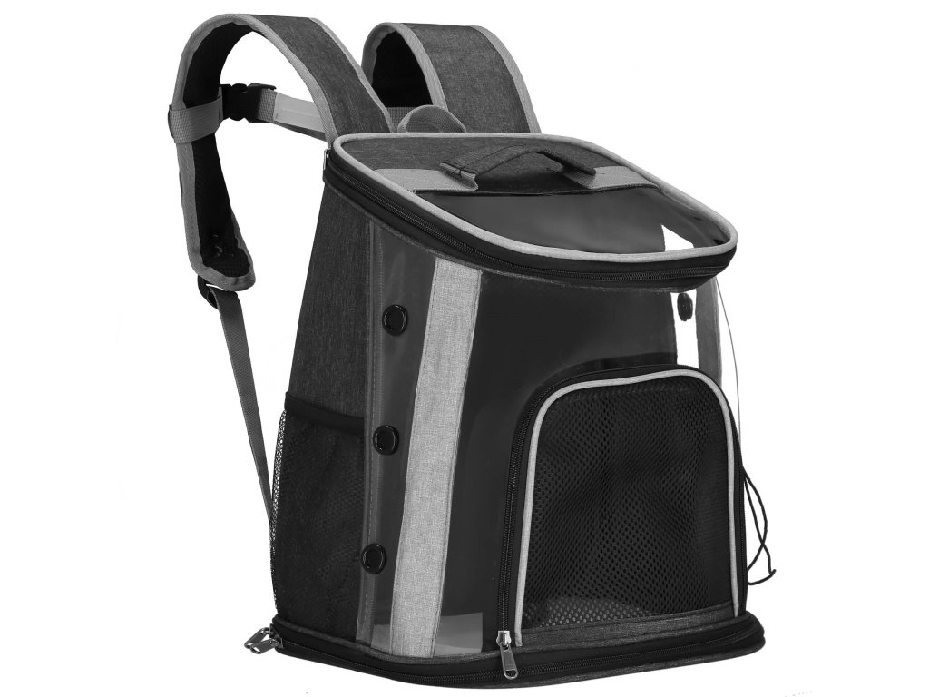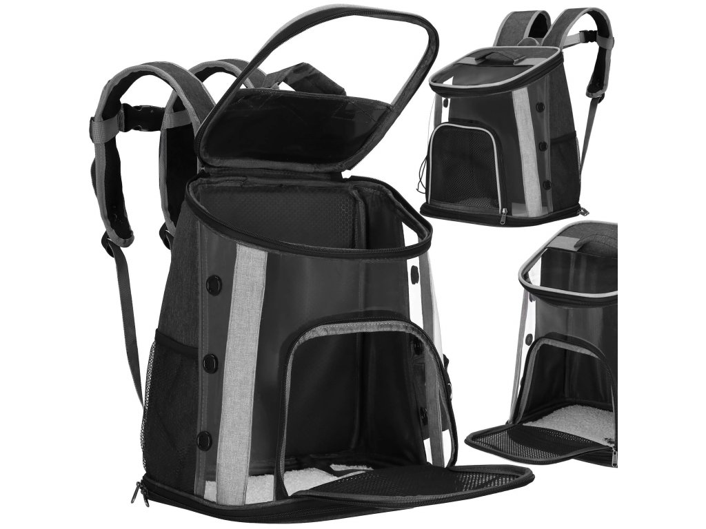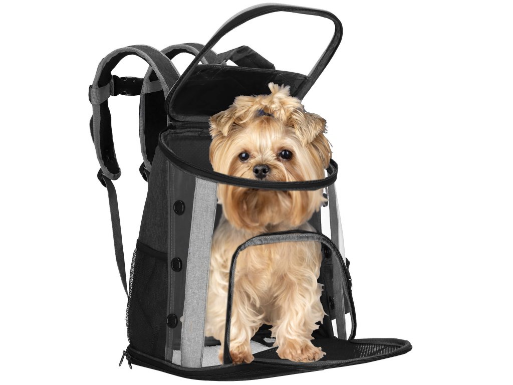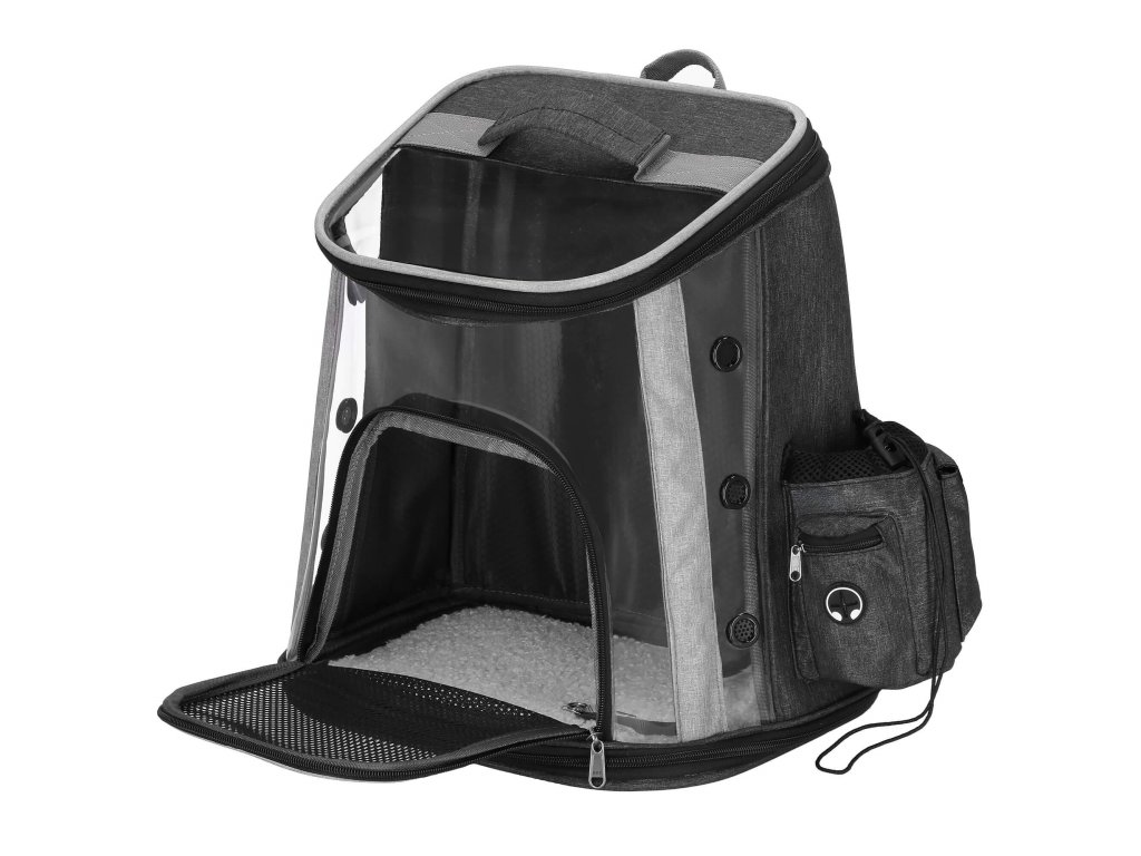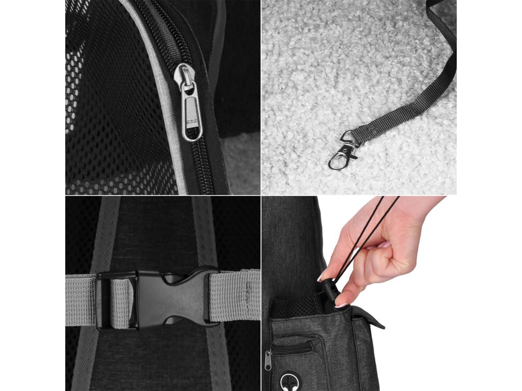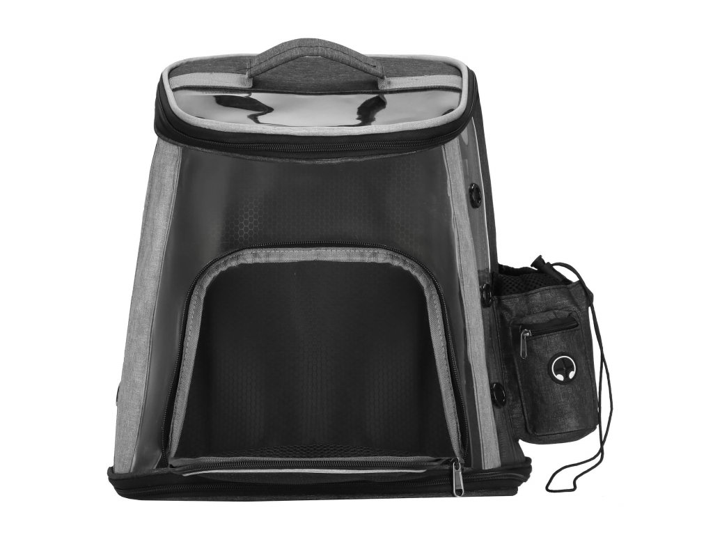 - Ko odpnete zadrgo sprednje stene, je mogoče prevoznika zložiti s prepogibanjem dna in stiskanjem njegove globine.
