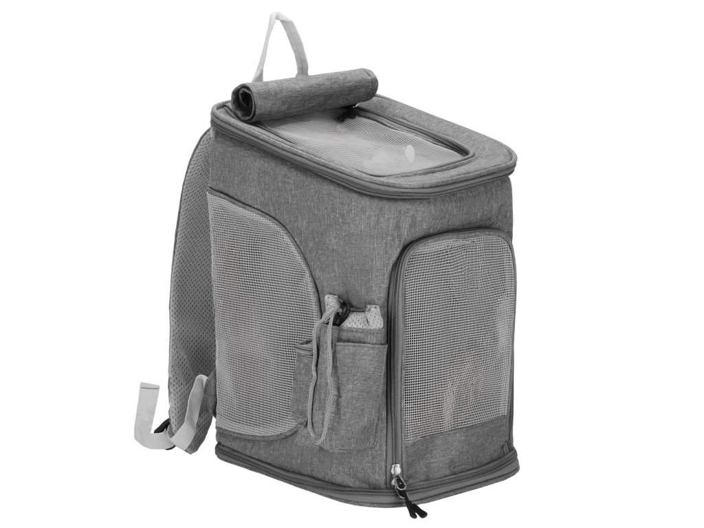 - Zgornja loputa je sestavljena iz dveh plasti - notranja z prezračevalno mrežico, ki se zapira na obojestransko zadrgo; zunanja iz tkanine, ki se zapira na magnetno sponko, lahko se zvije in pritrdi s sponko v odprtem položaju.