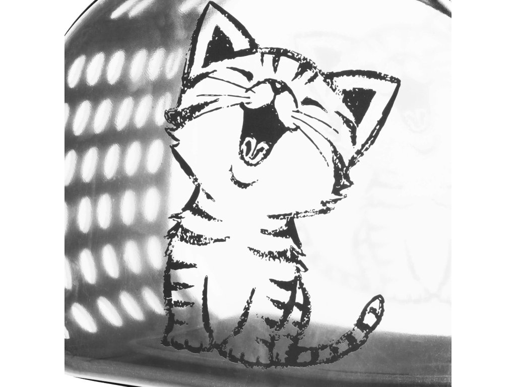 - Stranske stene so čvrste, narejene iz prozornega materiala, na vsaki je odtis z mačko