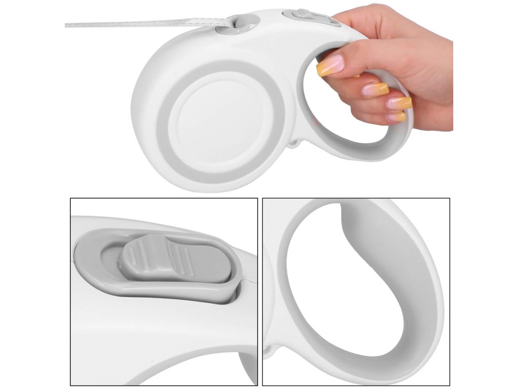 - Opozorite, da povodec ne bo hitro odskočil, ko ne bo več natezne sile. Pasje povodec navijajte počasi, da se izognete nepotrebnim poškodbam.