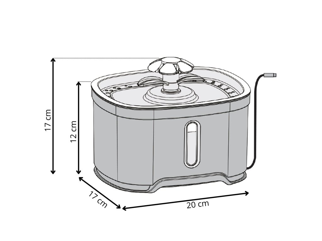 - Višina z nameščenim nastavkom za fontano: 17 cm