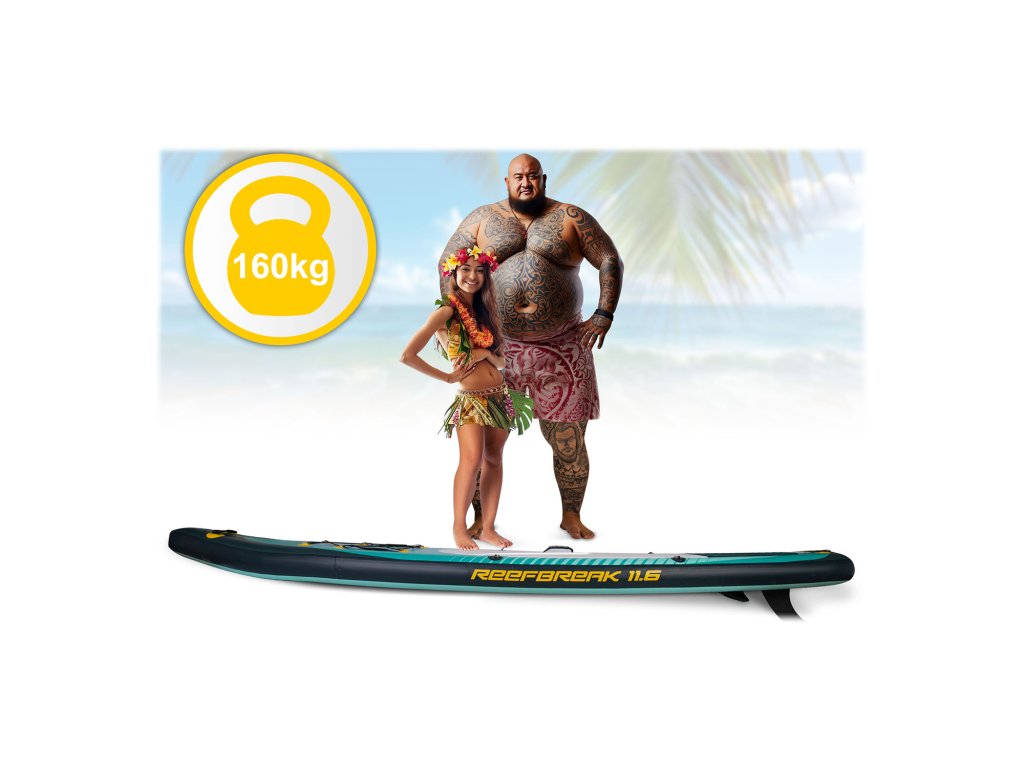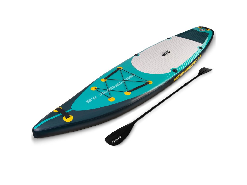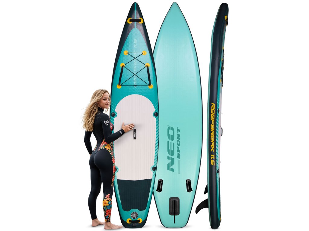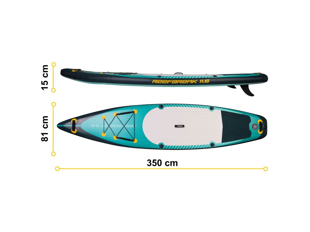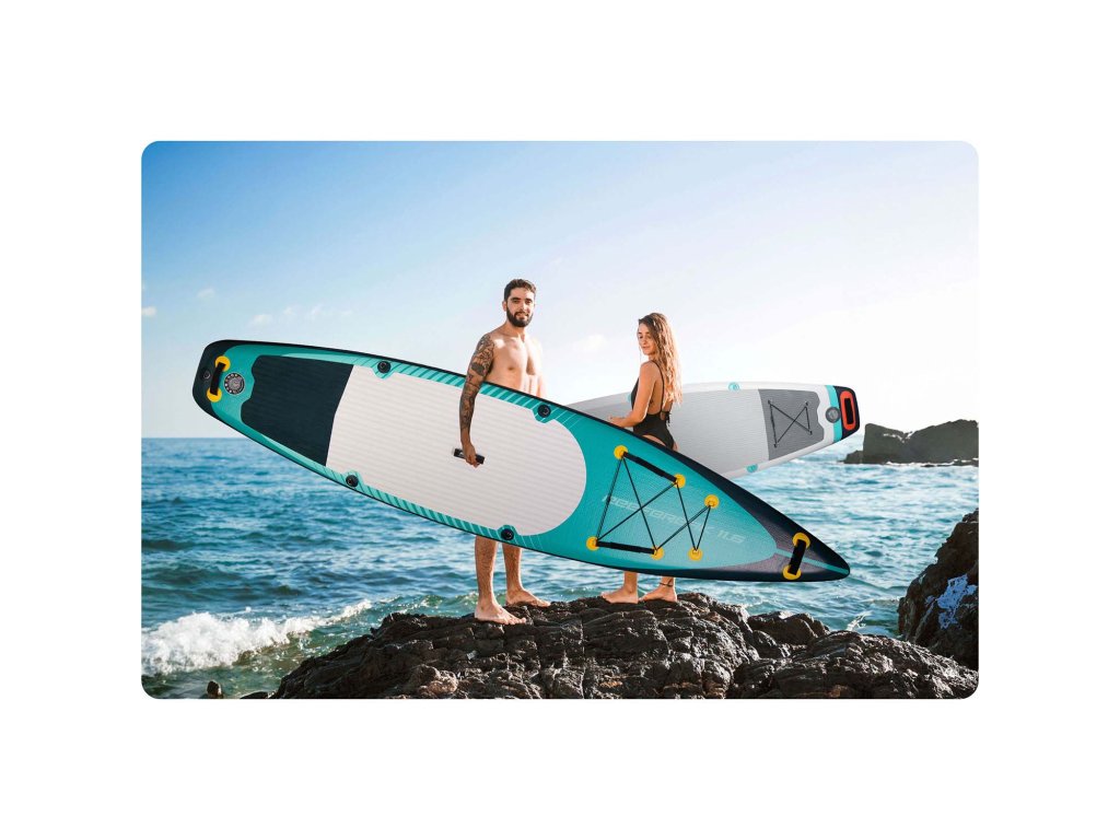 Deska SUP premijskega razreda s troslojno PVC konstrukcijo, vgrajeno karbonsko letvico in ojačanimi šivi.