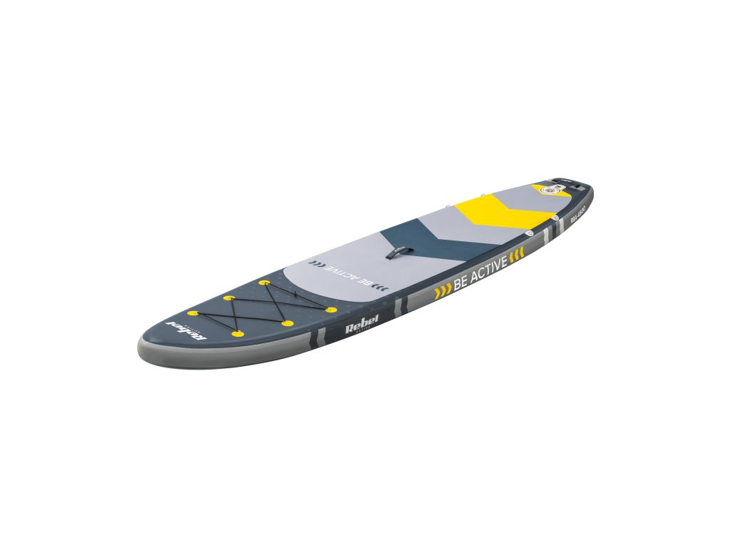 SUP deska Rebel Active se odlikuje po trdni in stabilni konstrukciji, izdelani s tehnologijo drop-stitch. Ne glede na raven tvojih veščin lahko varno pluješ po vodi tako stoje kot sede. Nedrseča paluba, prekrita s 3 mm debelo peno EVA, zagotavlja odličen oprijem, zato tudi intenzivna vožnja s SUP desko ni problem.