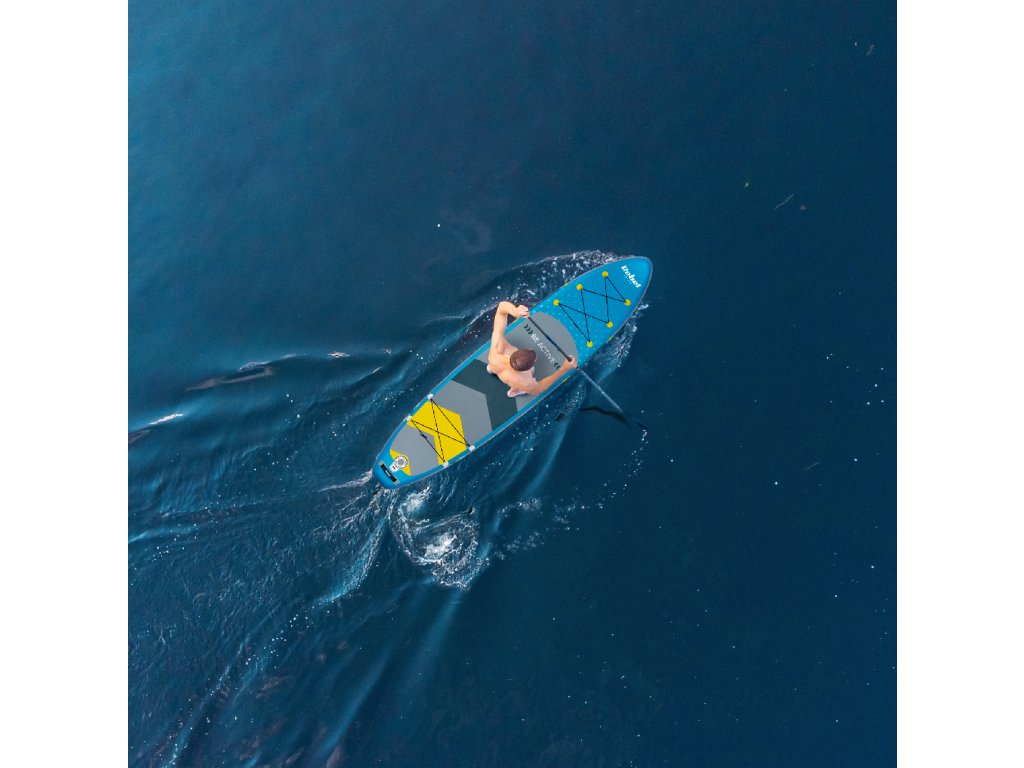 SUP deska RBA-4500 je na voljo v štirih barvah. Elegantna siva daje moderen in stilski videz, modra ustvarja občutek mirnosti, oranžna pa vas loči in doda dinamičen pridih vsakemu vodnemu pripetljaju. Na voljo je tudi bela površinska obdelava. Ta ponudba velja za modro desko. Druge barve so na voljo v ločenih ponudbah.