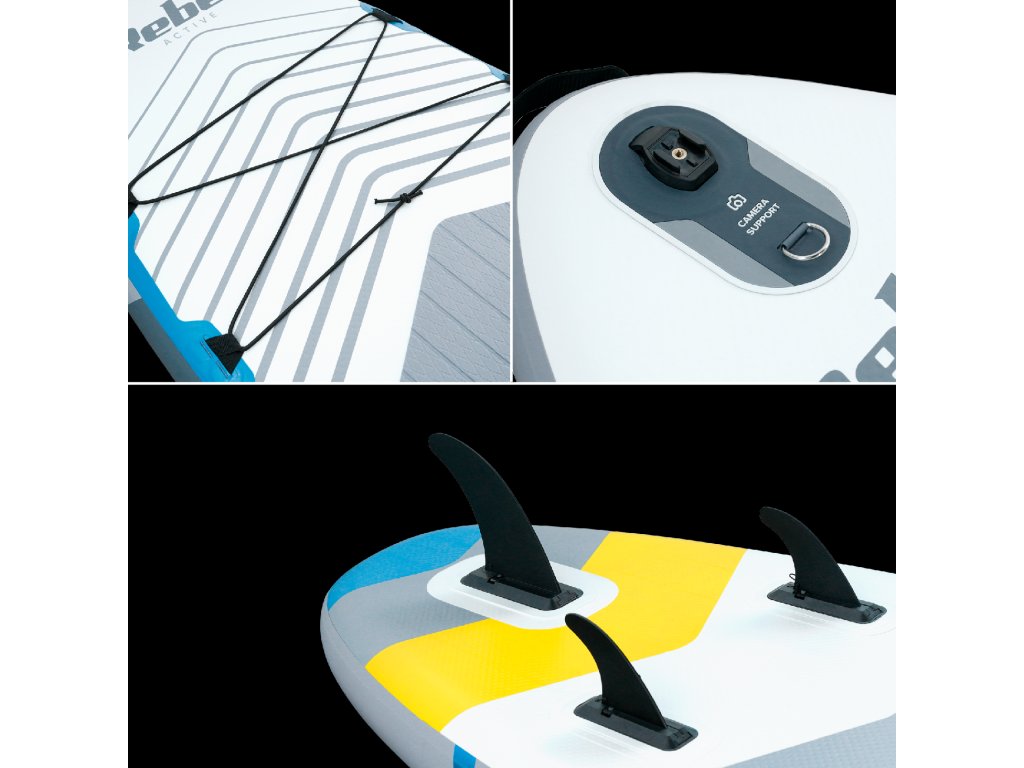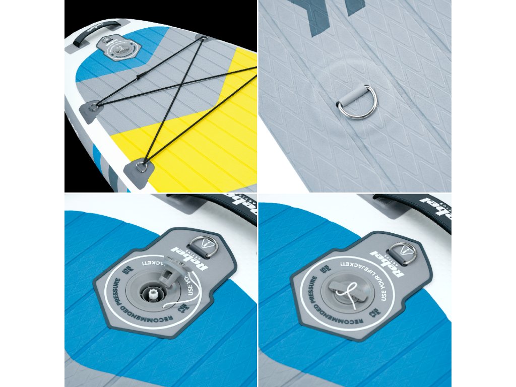 Paddleboard Rebel Active se odlikuje s trdno in stabilno konstrukcijo s tehnologijo drop-stitch. To vam omogoča varno gibanje po vodi, ne glede na vašo raven spretnosti, bodisi stoje ali sede. Nedrseča deska, prekrita s 3 mm debelo peno EVA, zagotavlja odličen oprijem, zaradi česar so tudi najintenzivnejše seje paddleboardinga mala malica.