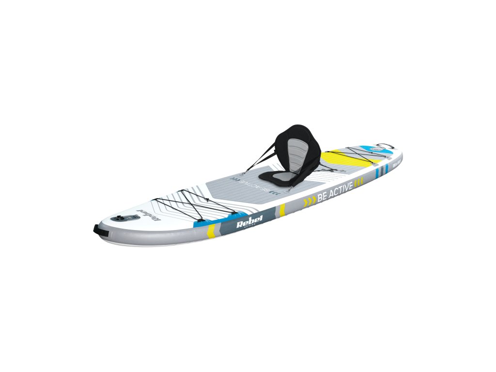 Za še večje udobje in stabilnost pri veslanju je deska Rebel Active SUP opremljena z udobnim sedežem z naslonjalom, ki ga je enostavno pritrditi in odstraniti po vaših željah. Ta rešitev omogoča udoben počitek med daljšimi izleti na vodi. Usedite se, sprostite se in uživajte v razgledu in miru narave.