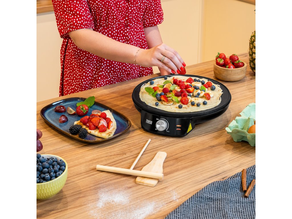 TSA3235 je aparat za palačinke, ki je idealna rešitev tako za izkušene kuharje kot tudi za tiste, ki šele začenjajo svojo kulinarično avanturo. Zaradi enostavne uporabe se bo naše naprava odlično obnesla v vsaki kuhinji. Zdaj bo priprava okusnih palačink postala pravi užitek!