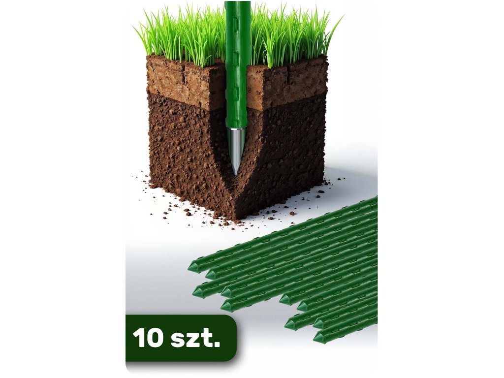Jekleno jedro zagotavlja trdnost in trajnost, medtem ko površina iz rebrastega PE povečuje oprijem poganjkov in ščiti pred poškodovanjem stebel.