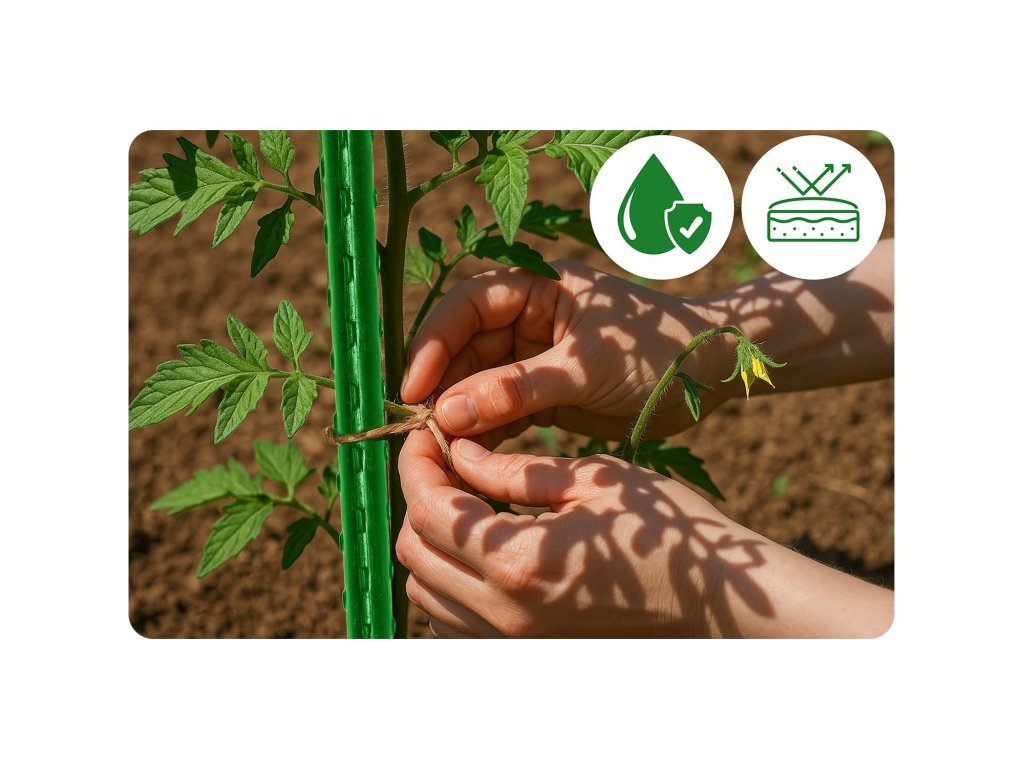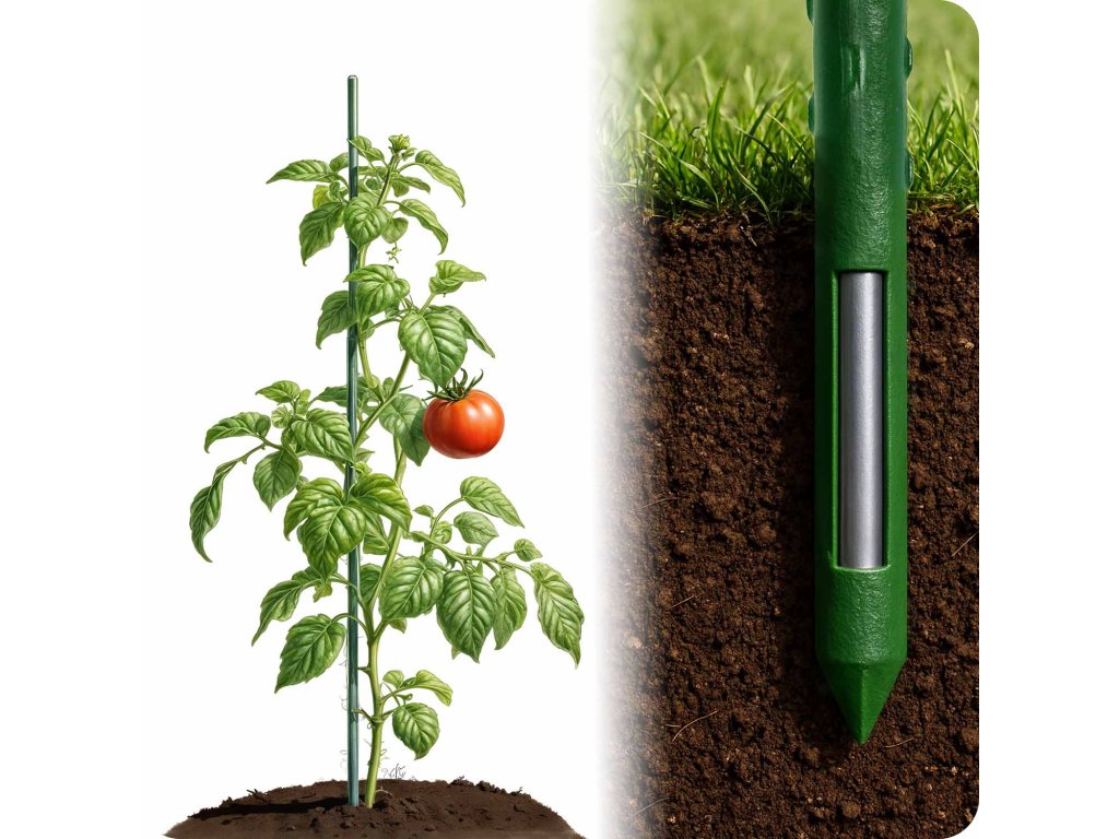 Ojačana konica in trdno pritrditev v zemljo zagotavljata idealno oporo tudi za težke, plodne rastline.