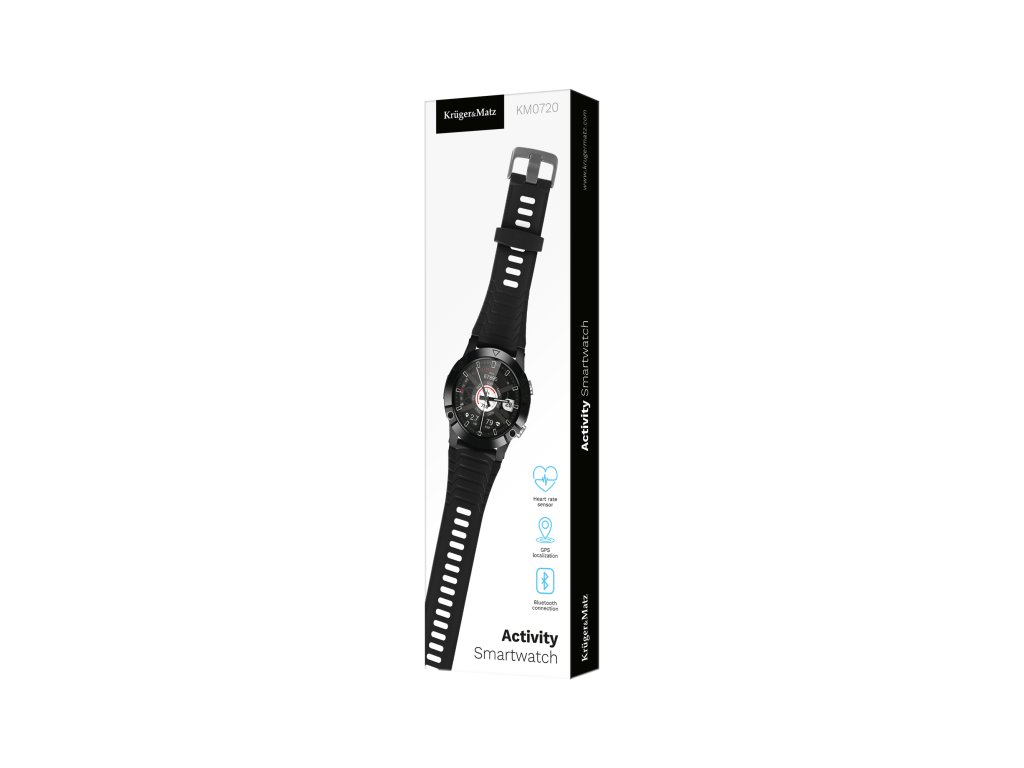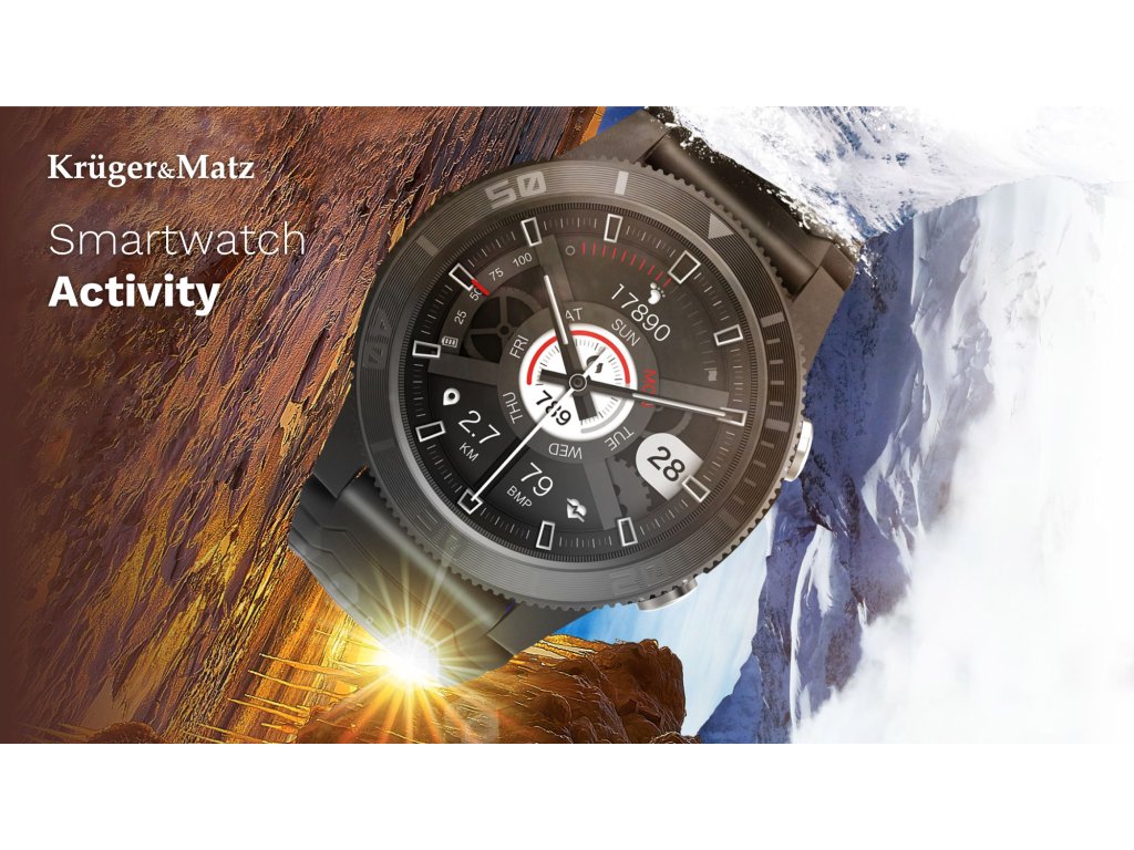 Športna ura Kruger&Matz Activity je opremljena z visokokakovostnim IPS zaslonom z diagonalo 1,32" in ločljivostjo 360x360 px. Zaradi tega so vse prikazane vsebine podrobne, tudi ob zelo sončnem dnevu, kar bistveno poveča udobje uporabe.
