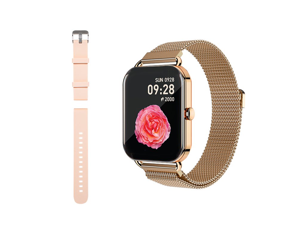 - Zlato ohišje in 2 zamenljiva paščka zagotavljata, da se pametne ure prilagodijo vsakemu slogu. Prav tako lahko prilagodiš številčnico - na voljo več kot 200 vzorcev!