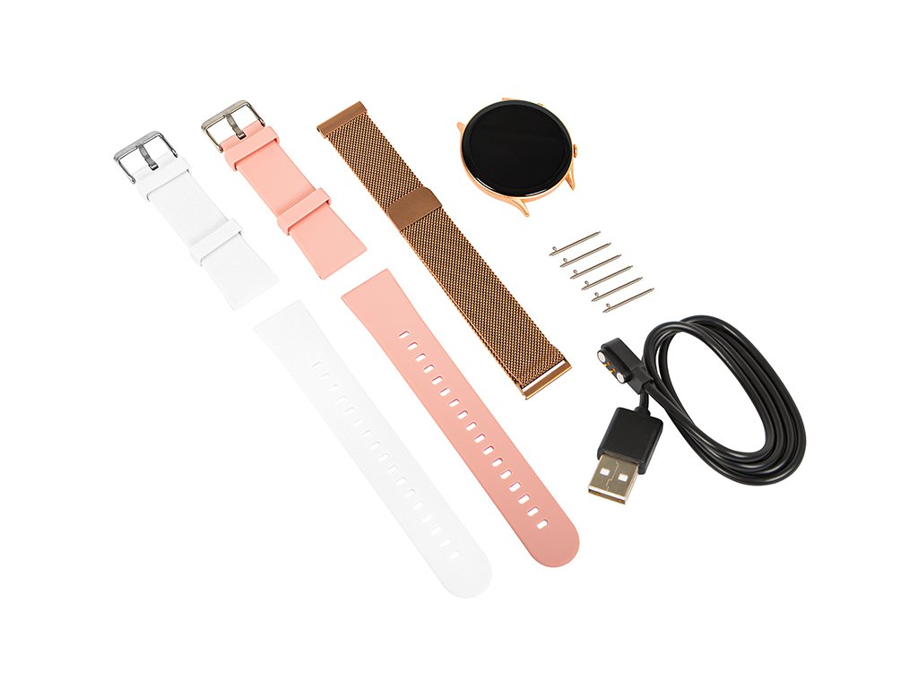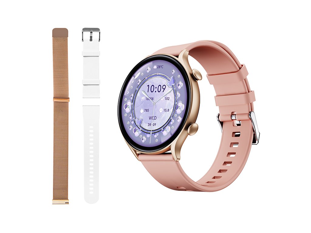- Zlato ohišje in 2 zamenljiva paščka bosta poskrbela, da se pametna ura prilagodi vsakomur stilskosti. Uro lahko tudi personalizirate – na voljo več kot 200 vzorcev!