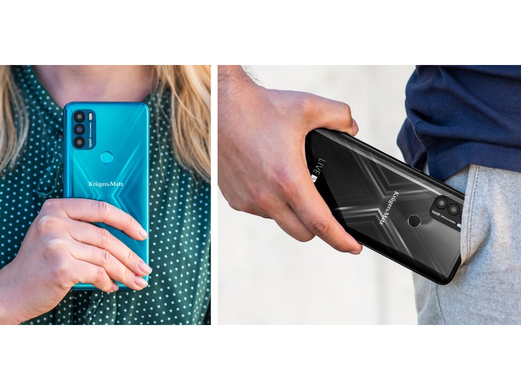 Potrebujete pametni telefon z velikim zaslonom? 9. generacija pametnih telefonov serije Kruger&Matz LIVE je model, opremljen s 6,5-palčnim zaslonom HD+ z razmerjem stranic 19:9. Uživajte v visoki ravni udobja, tako med brskanjem po spletu kot tudi pri uporabi različnih aplikacij.